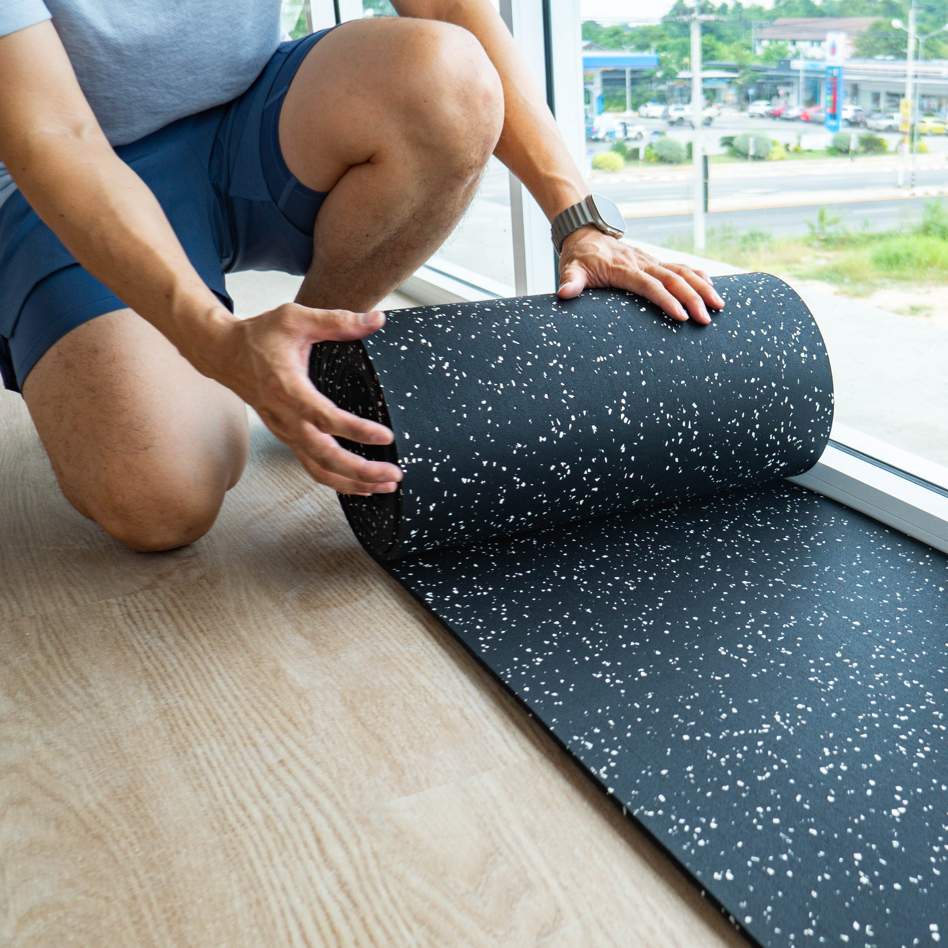 แผ่นยางปูพื้นฟิตเนส แผ่นยางกันลื่นแบบม้วน ม้วนยางปูพื้นฟิตเนส ยางปูพื้นกันกระแทก เหมาะสำหรับปูพื้นในฟิตเนส บ้าน หรือพื้นที่ออกกำลังกาย ช่วยลดแรงกระแทก ป้องกันพื้นเสียหาย ทำความสะอาดง่าย และมีความทนทานแม้จะวางเครื่องออกกำลังกายเป็นเวลานาน แผ่นยางก็ไม่แตก ทนทาน ใช้งานได้ยาวนาน ด้วยความหนา 6 มิลลิเมตร ช่วยซับเสียงได้ดี ไม่รบกวนผู้อื่น รองรับการตกกระแทกจากดัมเบล เครื่องออกกำลังกาย ป้องกันพื้นเสียหาย