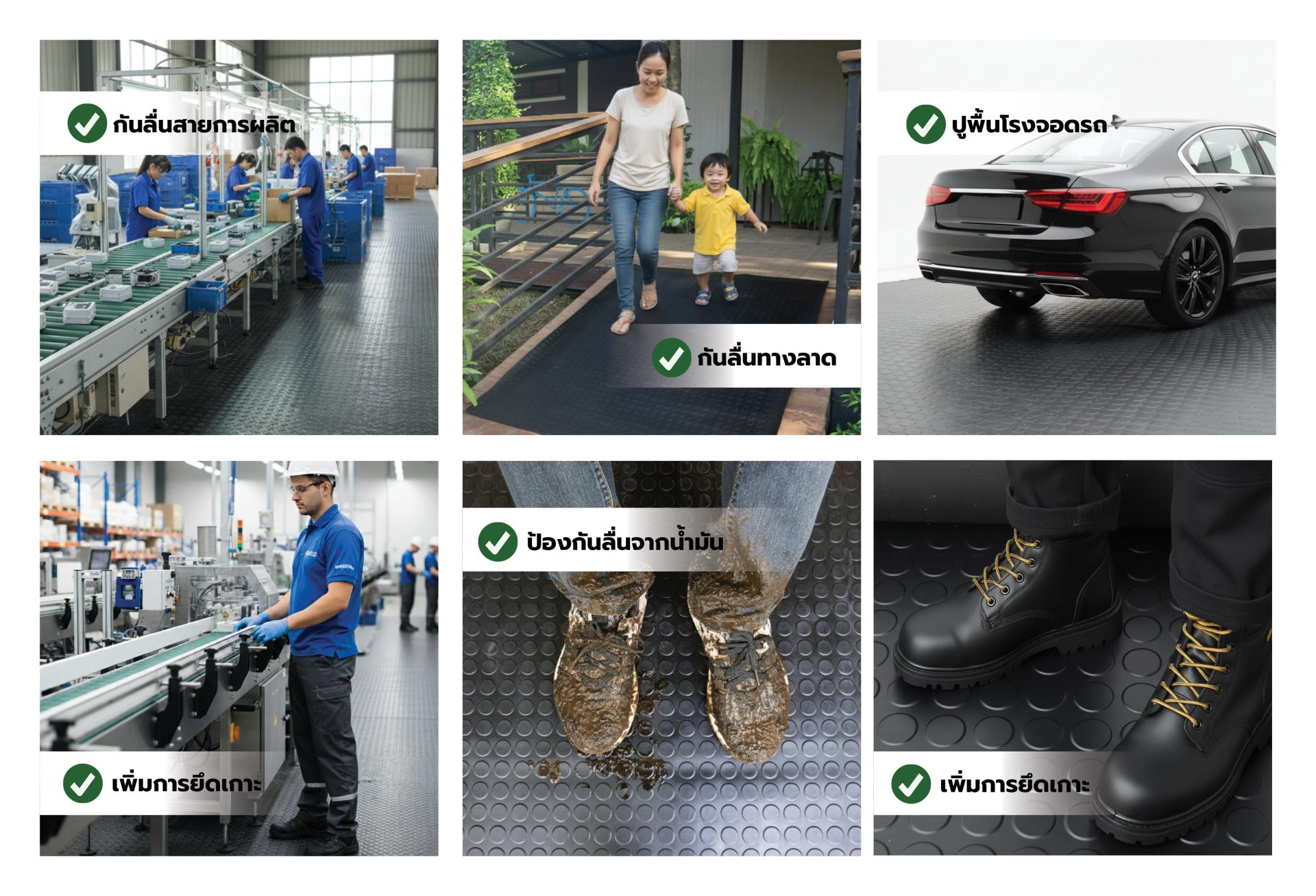 ในชีวิตประจำวันของเรา "พื้นลื่น" ถือเป็นหนึ่งในสาเหตุหลักของอุบัติเหตุที่เกิดขึ้นบ่อยครั้งและอาจส่งผลร้ายแรงได้ ไม่ว่าจะเป็นในบ้านเรือน โรงงานอุตสาหกรรม โรงเรียน สถานศึกษา หรืออาคารพาณิชย์ต่างๆ โดยเฉพาะอย่างยิ่งพื้นที่ที่มักเปียกชื้นอยู่เสมอ หรือมีคราบน้ำมันติดค้าง ซึ่งสามารถทำให้คนเดินผ่านไปมาลื่นล้มได้ง่ายดาย บางครั้งอาจนำไปสู่การบาดเจ็บสาหัสหรือแม้กระทั่งเสียชีวิตได้ ด้วยเหตุนี้ การติดตั้งยางปูพื้นกันลื่นจึงกลายเป็นทางเลือกที่ได้รับความนิยมอย่างมาก เพราะนอกจากจะช่วยเพิ่มความปลอดภัยให้กับผู้ใช้งานแล้ว ยังเป็นวิธีการที่ประหยัดค่าใช้จ่าย ติดตั้งง่าย และดูแลรักษาไม่ยุ่งยากอีกด้วย